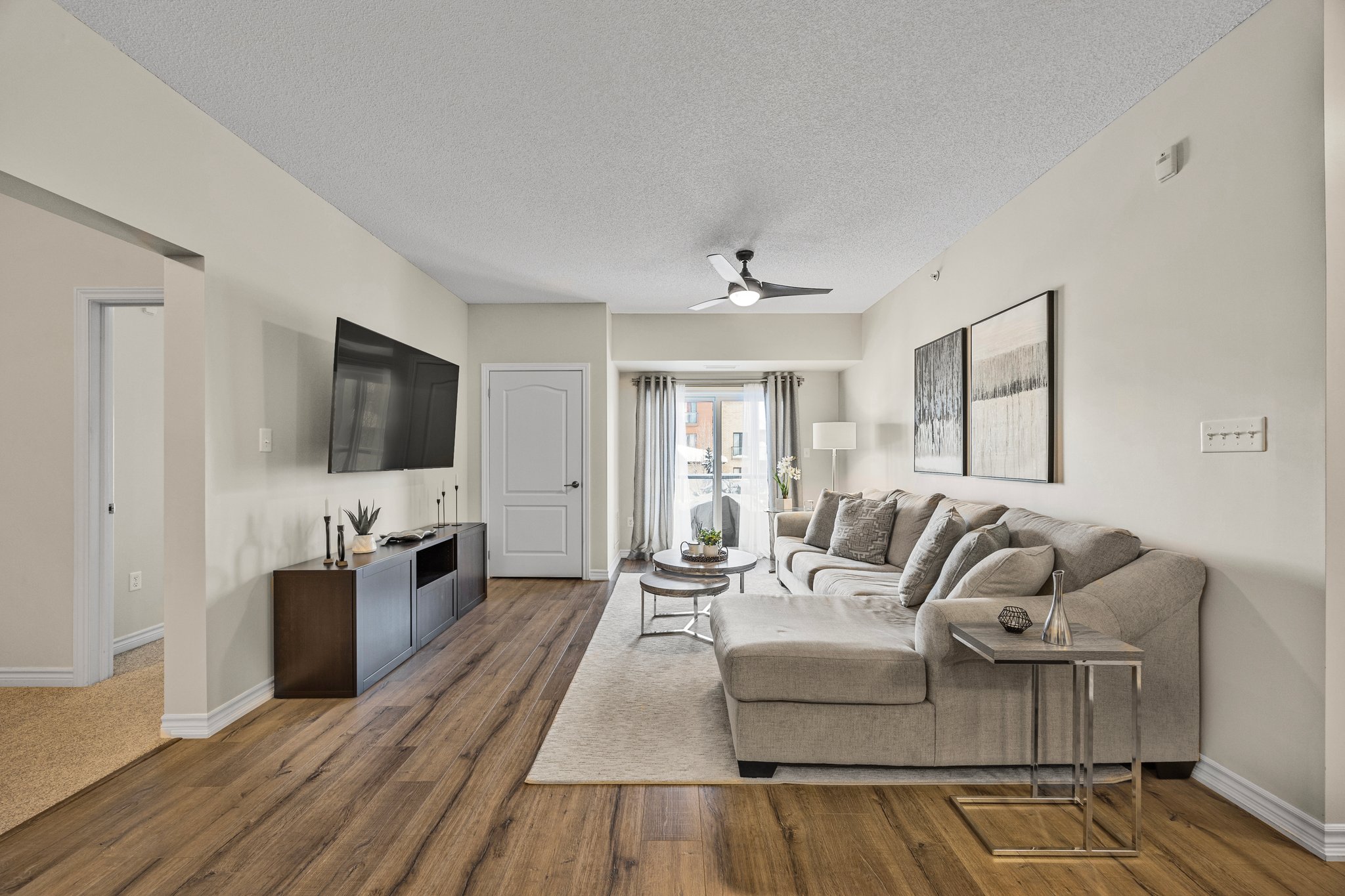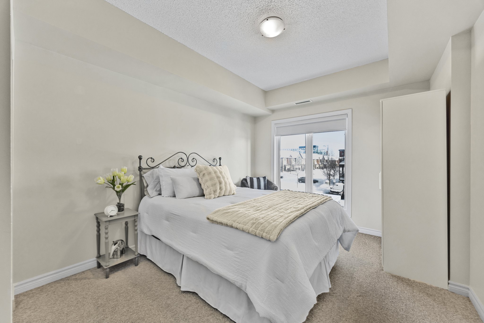 This bright split layout condo offers an ideal blend of comfort and style. The open-concept space has large windows that floods the space with natural light, has 9 foot ceilings, and a modern kitchen with ample storage. BBQs are allowed on the extra large private balcony—perfect for entertaining, enjoying a morning coffee or relaxing in evening. Additional features include 2 owned parking spots and a locker. For added convenience there is also In-suite laundry and a community gym. Close to the GO station, Hwy 400 and all the amenities.